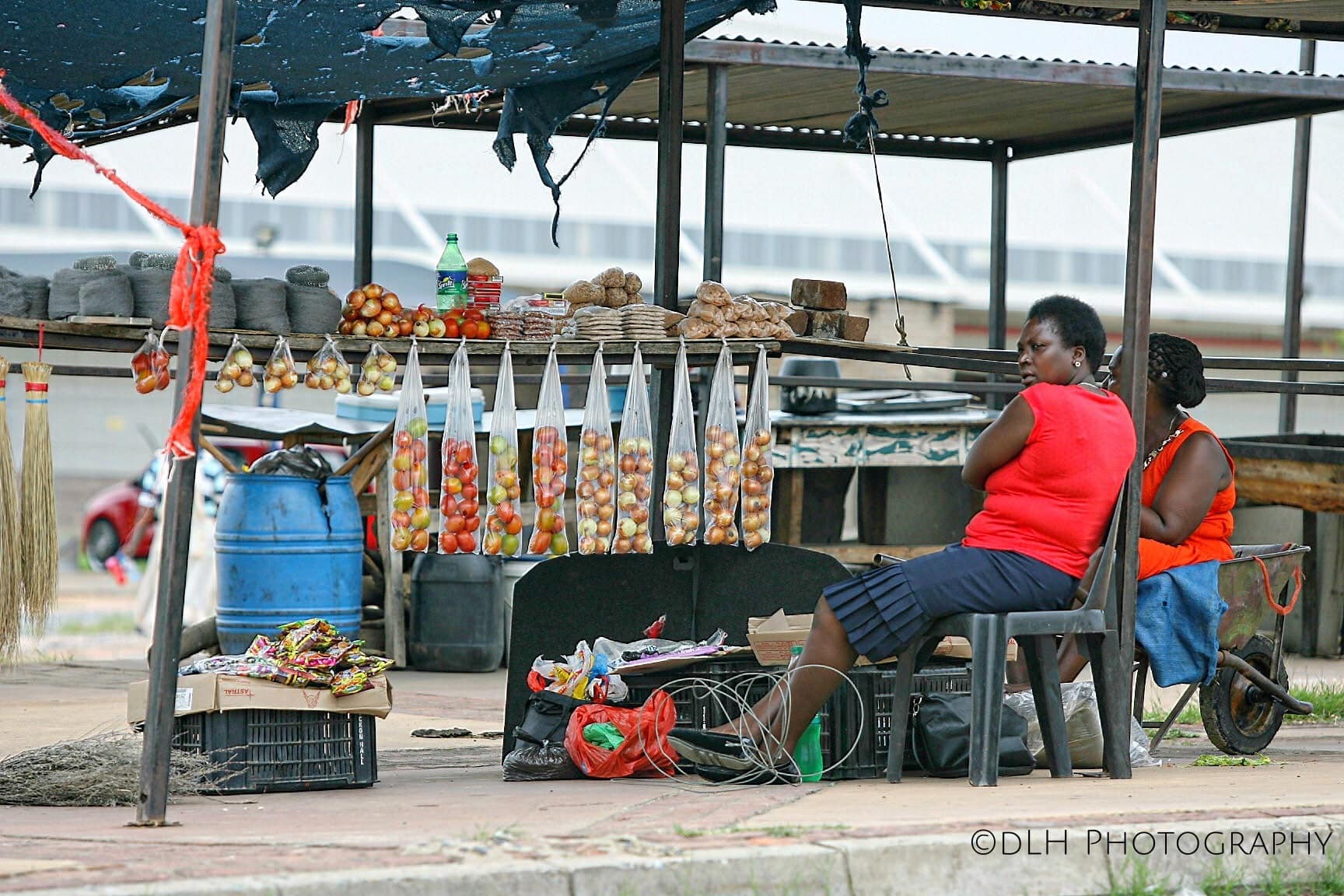 We bereiken eMalahleni, een typisch Afrikaans plaatsje waar het volk op straat leeft. In kleurrijke en veel te strakke kledij begeeft de ene helft zich huiswaarts en de andere richting de talloze marktstalletjes op een rood zanderig en stoffig plein. Onze ogen scannen de berm af naar koffie. Ezels en pick-up trucks beladen met handelswaar, honderd-en-één uitspanningen met ieder zijn eigen variant van gefrituurde, gebraden, gegrilde en gehavende kip passeren het blikveld. Ook de Colonel is goed vertegenwoordigd. Het cafeïneshot wordt door overmacht uitgesteld.