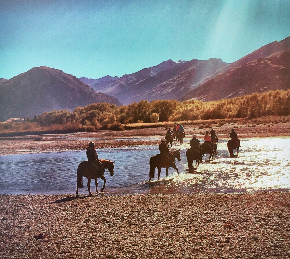 Tientallen meters brede rivieren in nog bredere beddingen van zand en keien. We gaan ze oversteken. Ben ploetert tegen de stroming en drift wat opzij als een auto met onderstuur terwijl ik mijn gelaarsde voetjes droog hou. Nou ja, niet helemaal want het aangemeten schoeisel is zo lek als een mandje.